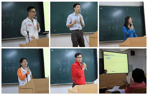 本次大赛分为笔试、主题班会策划书及视频评比、现场展示三大环节,包括基础知识测试、微博写作、谈心谈话、主题班会策划、班情熟知和案例分析六个方面内容,全体辅导员参加了比赛。笔试、主题班会策划书及视频评比两个环节于4月25日完成。在班情熟知环节,辅导员根据所带学生照片说出该生名字及基本情况资料。在情景案例环节,辅导员根据抽取的工作案例,依据相关规定,运用理论积累和经验做法从案例背景、问题关键点、解决思路、实施办法、经验启示等方面进行了分析解读。这些项目考察了辅导员在具体的学生工作中综合运用有关法律法规和教育学、心理学、职业生涯规划、学生日常事务管理等方面的知识和技能,以及发现、分析和解决学生具体问题的能力。