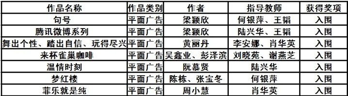 附:我院第十一届中国大学生广告艺术节学院奖获奖名单