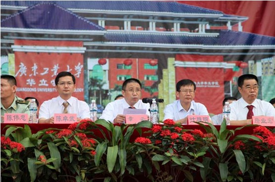 广东工业大学副校长、华立学院院长章云教授、广东工业大学陈卓武副校长,中国人民武装警察部队广州指挥学院陈伟忠少校、冯秀景少校,广东工业大学华立学院副董事长叶雅明先生,华立园兄弟院校的领导,院领导詹业宏、王锦秀、邓则名、柏育红、王学军及各部门负责人参加了大会。大会由常务副院长詹业宏主持。