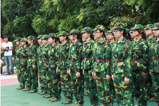 训练虽然艰苦,但学生们始终精神抖擞。高昂嘹亮的口号声在训练场回响,唤起华立校园勃勃的生机,让我们共同期待2013级稚嫩面孔的成长。
