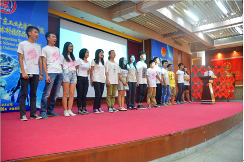 紧接着,由各部门部长带领新干事分别上台作自我介绍,各部门、队伍的介绍都各具风格,他们独具一格的出场和表演活跃了会场的气氛。