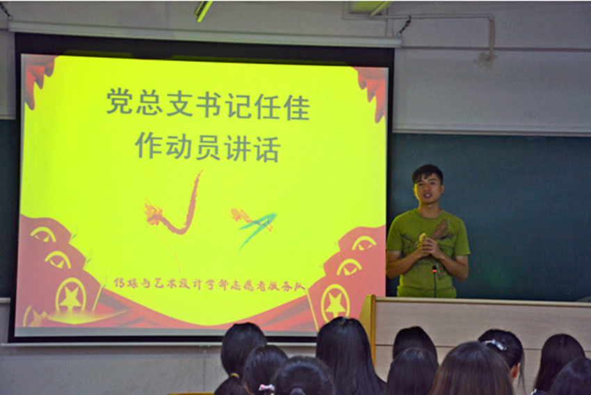 会议开始,由党总支书记任佳作动员讲话。任书记首先就过去一年学部的志愿工作进行了总结,并对上一年志愿团所取得的成绩给予了肯定,并希望新一届志愿团继续秉承“快乐服务”的精神,进一步完善学部志愿服务品牌项目建设,努力提升志愿服务水平,以己之力去帮助更多有需要的人。