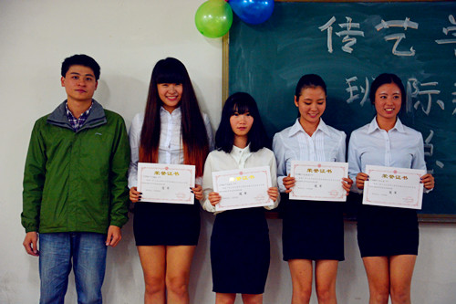 (图为邱志宏老师为冠军14广电编导班颁发荣誉证书)