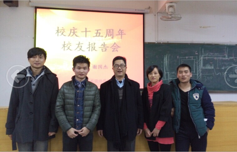 2014年12月18日下午,学部在3-307举行了校庆十五周年校友报告会,会议邀请了10级毕业生谢国杰主讲,其目前就职于广东省集美集团。学部部长程东胜、党总支书记任佳、校外副主任文谧及学部专业老师出席了本次报告会。