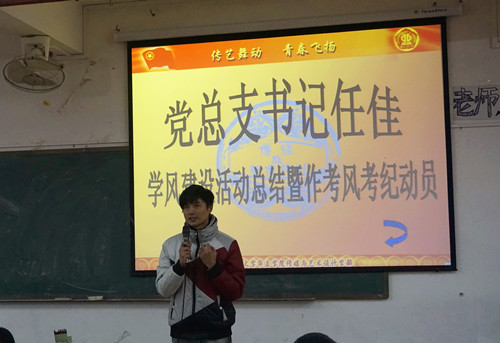 会议最后,由党总支书记任佳就前一阶段学部学风建设活动进行了总结,针对存在的不足与在场的同学们进行了探讨,并就考风考纪动员对在场同学提出了要求:1.大家要认真复习,及时调整好心态,以良好的状态迎接期末考试的到来;2.严格遵守学院考试规章制度,做文明、诚信的大学生;3.学生干部、学生党员要起到模范带头作用,正人先正己,正己后正人。