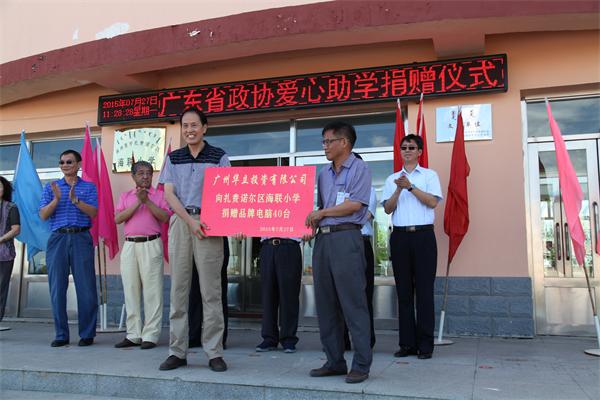 2015年7月27日,受广州华立投资有限公司、华立学院董事长张智峰委托,华立投资公司董事长助理赵承勇代表董事长参加广东省政协科教卫体委员会考察团一行赴内蒙古呼伦贝尔市进行参观考察及捐赠电脑助学活动。当天的捐赠仪式上,赵主任代表张智峰董事长向满洲里市扎赉诺尔区海联小学捐赠40台方正品牌电脑,价值15万元。