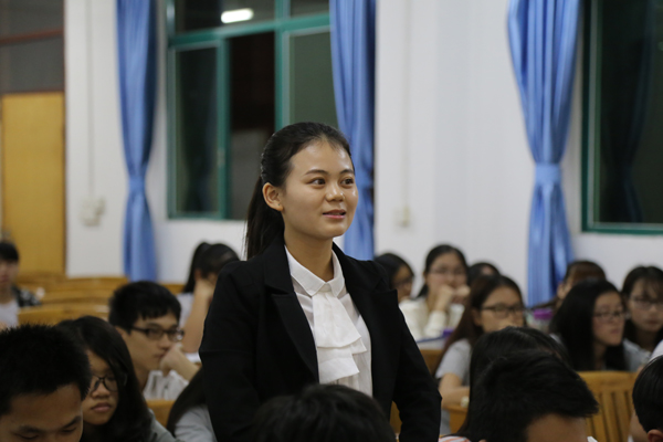 在理论知识授课阶段,授课人员从依法治国开始,细致地为学员们讲解了十八届四中全会的主要议程,更通过举例两会对老百姓生活的改变,使学员们在关注两会时间的同时关注两会热点。授课过程中,学员们仔细听课,认真笔记,深入思考并积极参与互动分享环节。