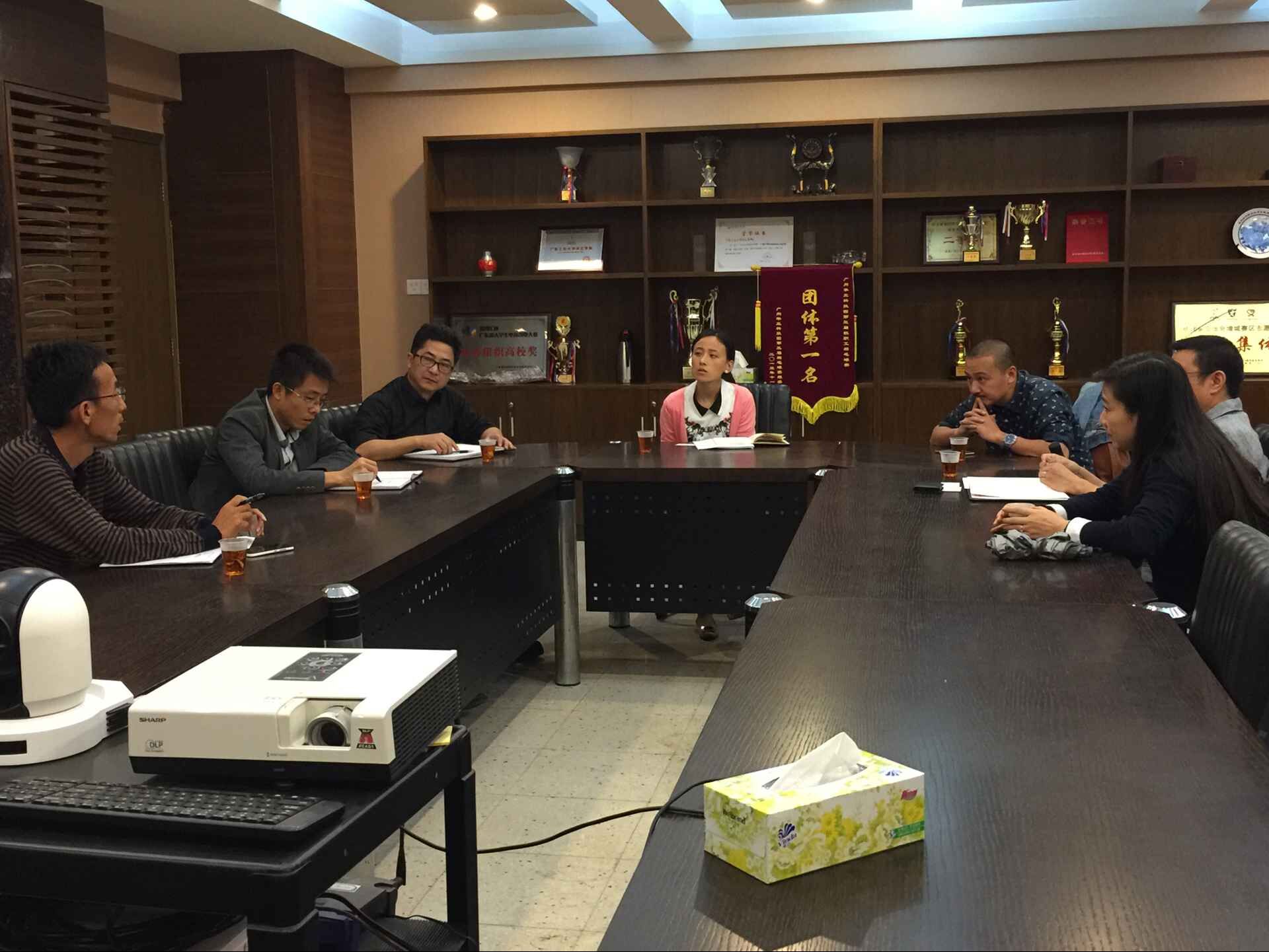 2015年11月13日上午,广东电视台公共频道领导一行三人来我院洽谈实习生合作项目,学院郭颂平副院长、王学军副院长、校外管理处李斌处长和传媒与艺术设计学部程东胜部长参加了会议。