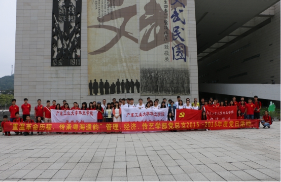 为贯彻落实十八大会议精神,追寻红色足迹,缅怀革命先烈,并进一步了解广州灿烂悠久的历史, 11月21日,传艺、管理、经济学部党总支组织党员赴广州开展学习活动。当日,我学部共有26名学生和教职工党员前往本次党日活动的目的地——辛亥革命纪念馆和粤海第一关纪念馆,感受革命烽火、领略海上丝绸之路的文明。