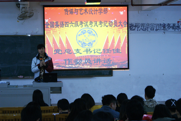 首先,党总支书记任佳老师为同学们作考风考纪动员讲话。书记要求在场同学要认真复习,及时调整好心态,以良好的状态,迎接期末考试,还强调了最近的英语四六级考试若作弊是当违法行为处理,希望同学们严格遵守法律和学院考试规章制度,做文明、诚信的大学生。