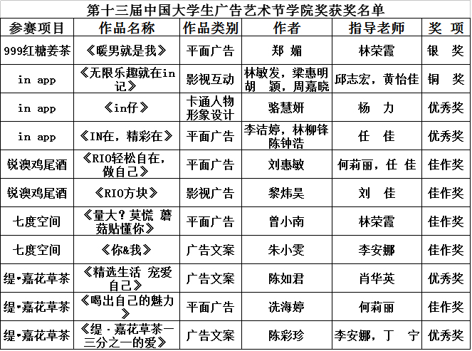 喜报:我学部学子在第十三届中国大学生广告艺术节学院奖获得佳绩