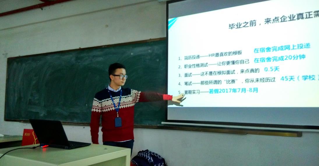 3月24号下午,“上市公司HR招聘经理带你玩转应聘圈”——海印集团OMG实习生计划“大咖说”宣讲会在3号楼209和202举行,此次宣讲会由海印股份招聘经理黄慧敏经理负责,海印集团招聘主管李营主讲,本学部和机电学部的13级同学们参加了此次宣讲会。