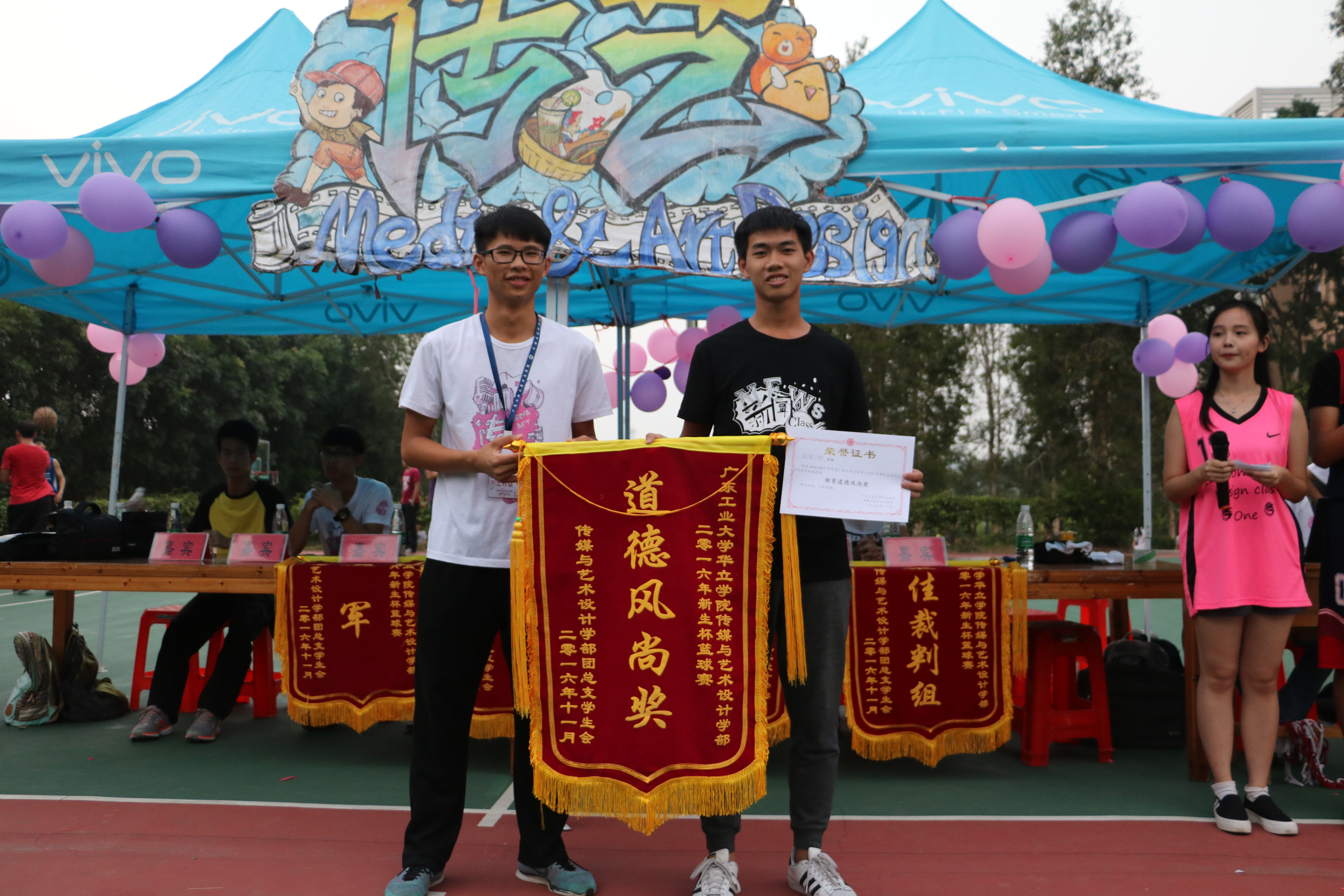 颁奖典礼上,由团总支书记陈国斌为赢得冠军的新境班颁奖,团总支副书记许灯美为赢得亚军的新闻1班颁奖,学生会副主席周嘉晓为赢得季军的环境班颁奖,获得最佳裁判组的篮球协会由学生会副主席伍尚仪进行颁奖,获得道德风尚奖的新闻2班则由体育部部长陈子君进行颁奖。