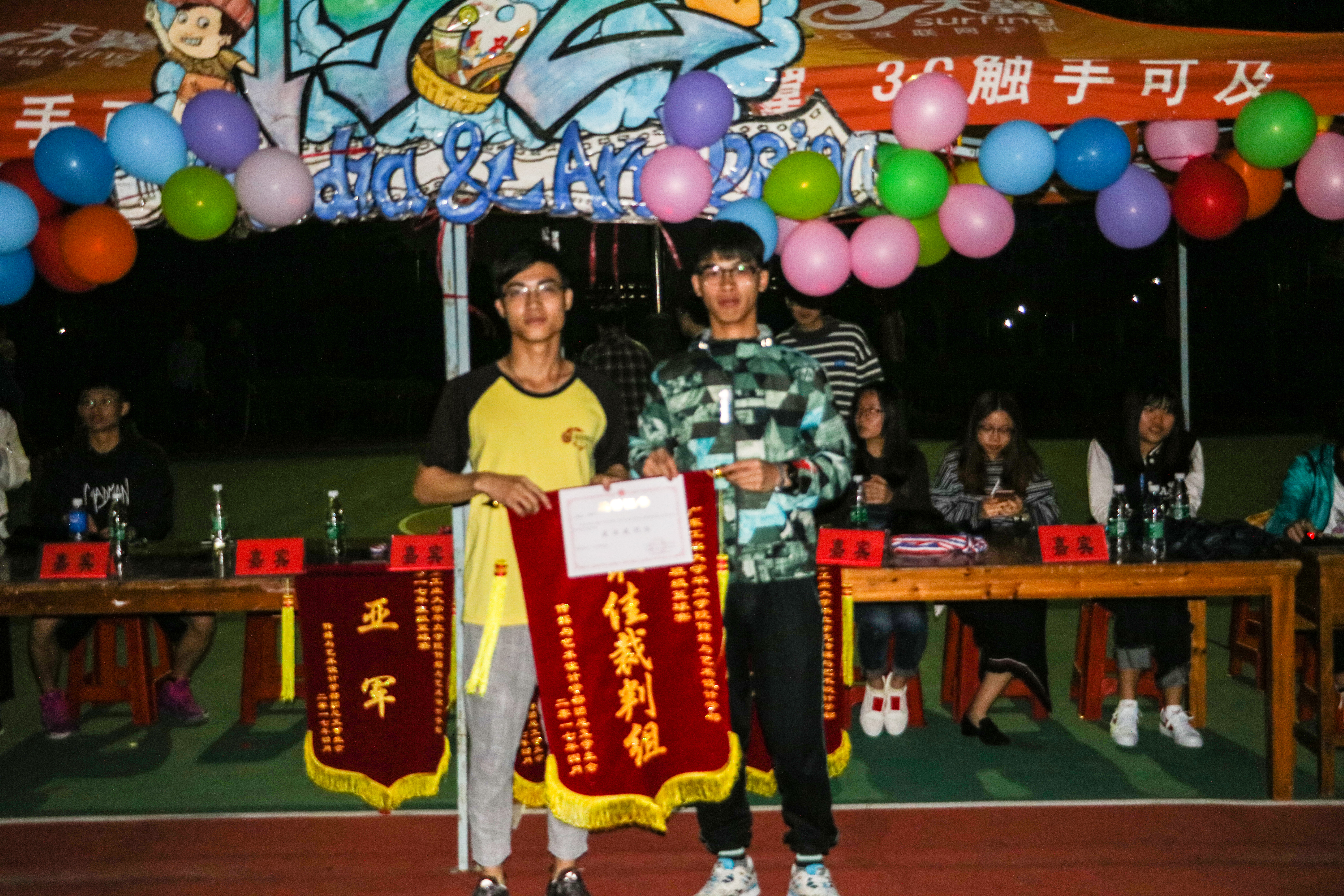颁奖典礼上,由学生会体育部部长陈子君为获得道德风尚奖的16新闻1班颁奖,学生会副主席伍尚仪为最佳裁判组颁奖,体育部副部长杜月娥为季军15环境1班颁奖,学生会副主席张文俊为亚军14新境班颁奖,学生会副主席周嘉晓为冠军15环境2班进行颁奖。