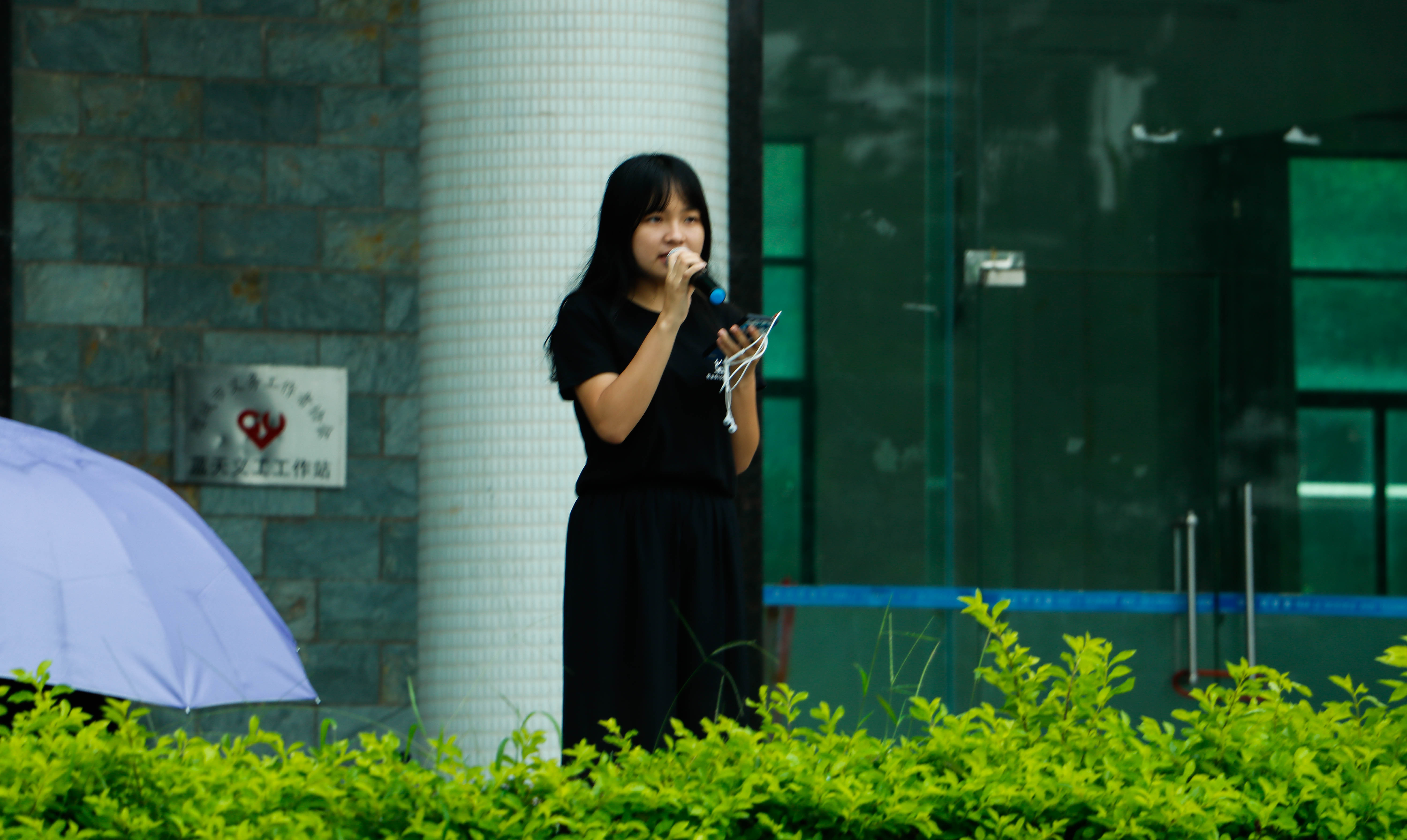 仪式伊始,主持人在综合楼舞台前进行发言,强调当代学生应该具有自强不息、艰苦奋斗、顽强拼搏的精神。