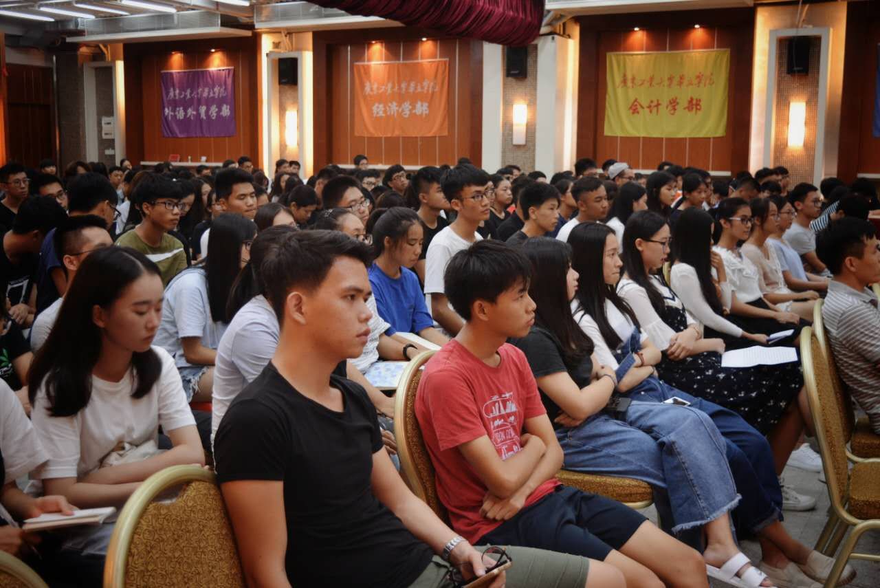 在场的大一新生们都在认真地听取老师和师兄师姐们的经历和心得,这能帮助他们迅速融入大学的新生活。