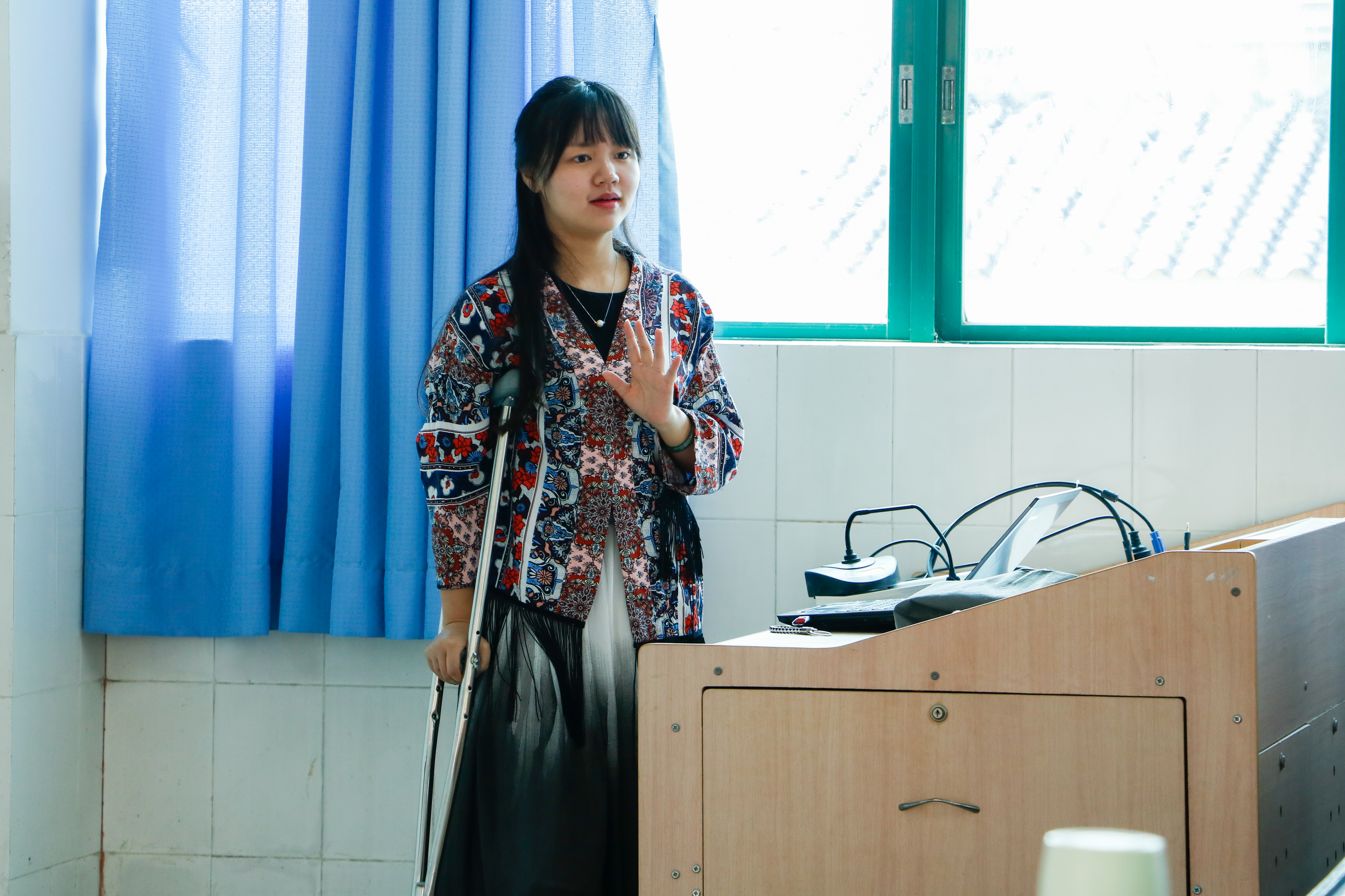 传媒与艺术设计学部不乏兼具优秀师德师风的教师,李卓文老师便是其中一位。带着脚伤上课的她,走起路来有些许不便,本应坐着为学生授课,但每当她讲到精彩之处或是学生有疑问之时,她便会拄着拐杖站起来更加专注地讲解她的授课内容,学生也深受鼓舞,更加认真地听课。课堂上,她会根据学生的听课反应及时地变换方法,为学生能够更好地听懂她所讲解的知识。课余时间她非常乐意学生找她谈论学习、生活等方面的问题,会为学生们解疑释惑。