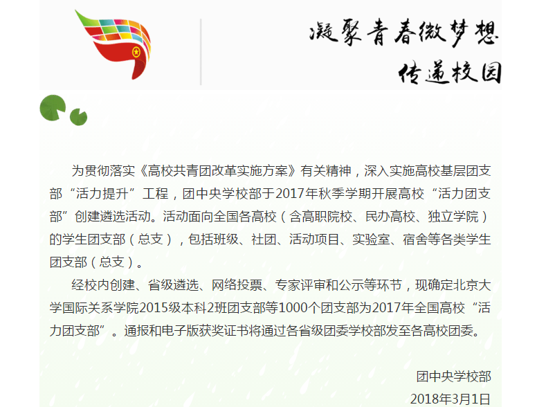 喜讯:我学部动画专业2016级1班团支部入选全国“活力团支部” 作者:计算机系 发布时间:2018-03-01 00:00:00 浏览次数: 次 【字体:小 大】 传媒与艺术设计学部 2018年3月1日 分享到: 【打印正文】