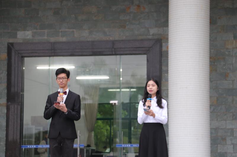 首先,两位主持人向全体师生问好,清脆悦耳的声音缓缓传来: “伴随着晨光的升起,我们在鲜红的国旗下列队,共同迎接这个光荣的时刻。心怀对伟大祖国的美好祈愿,奏响为中国贡献青春的恢弘乐章。”升旗仪式正式开始,国旗护卫队踏着整齐有力的步伐向升旗台走去,同学们庄严肃立,面向国旗。国歌响起,国旗缓缓升起,迎风飘扬。