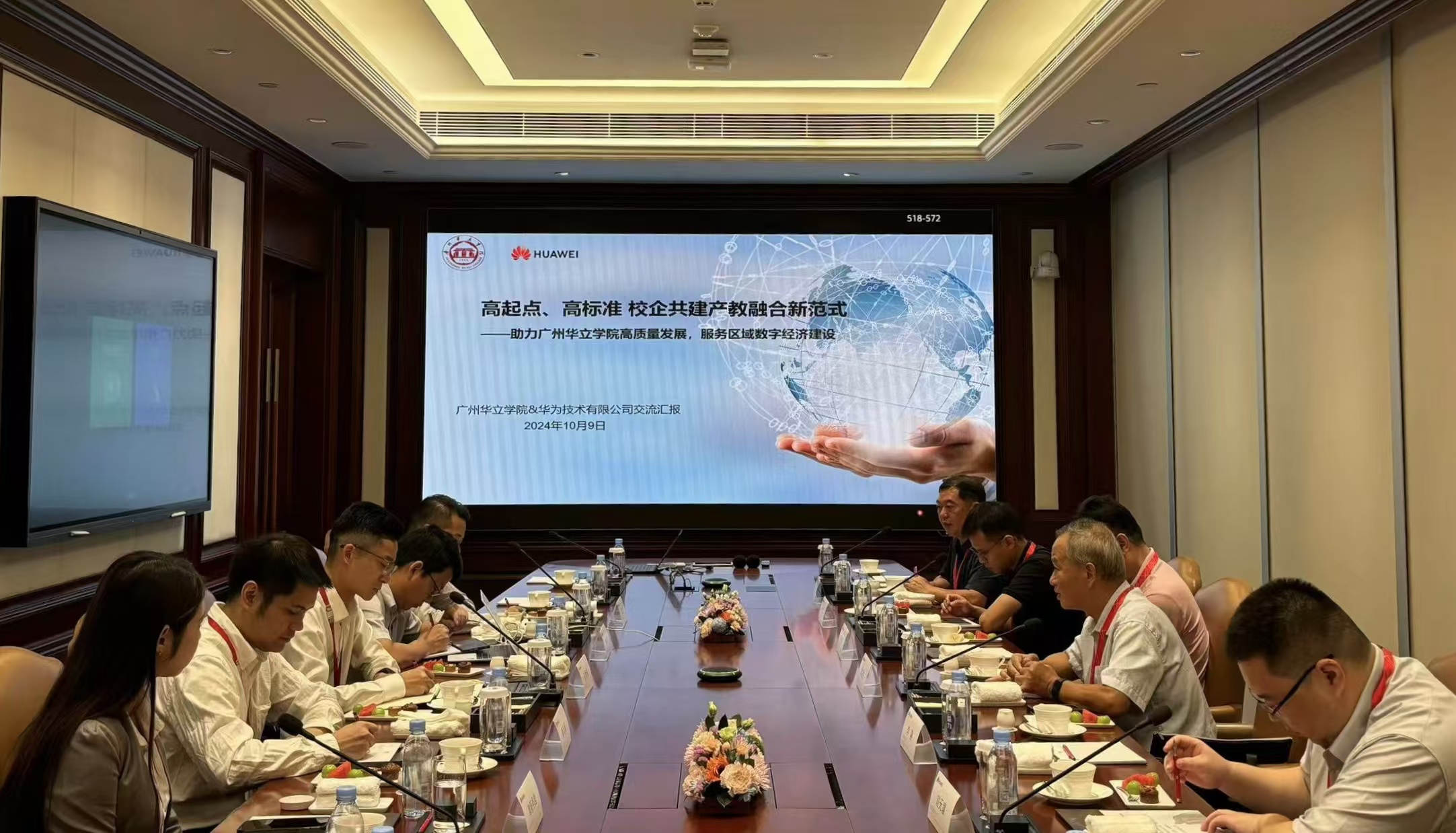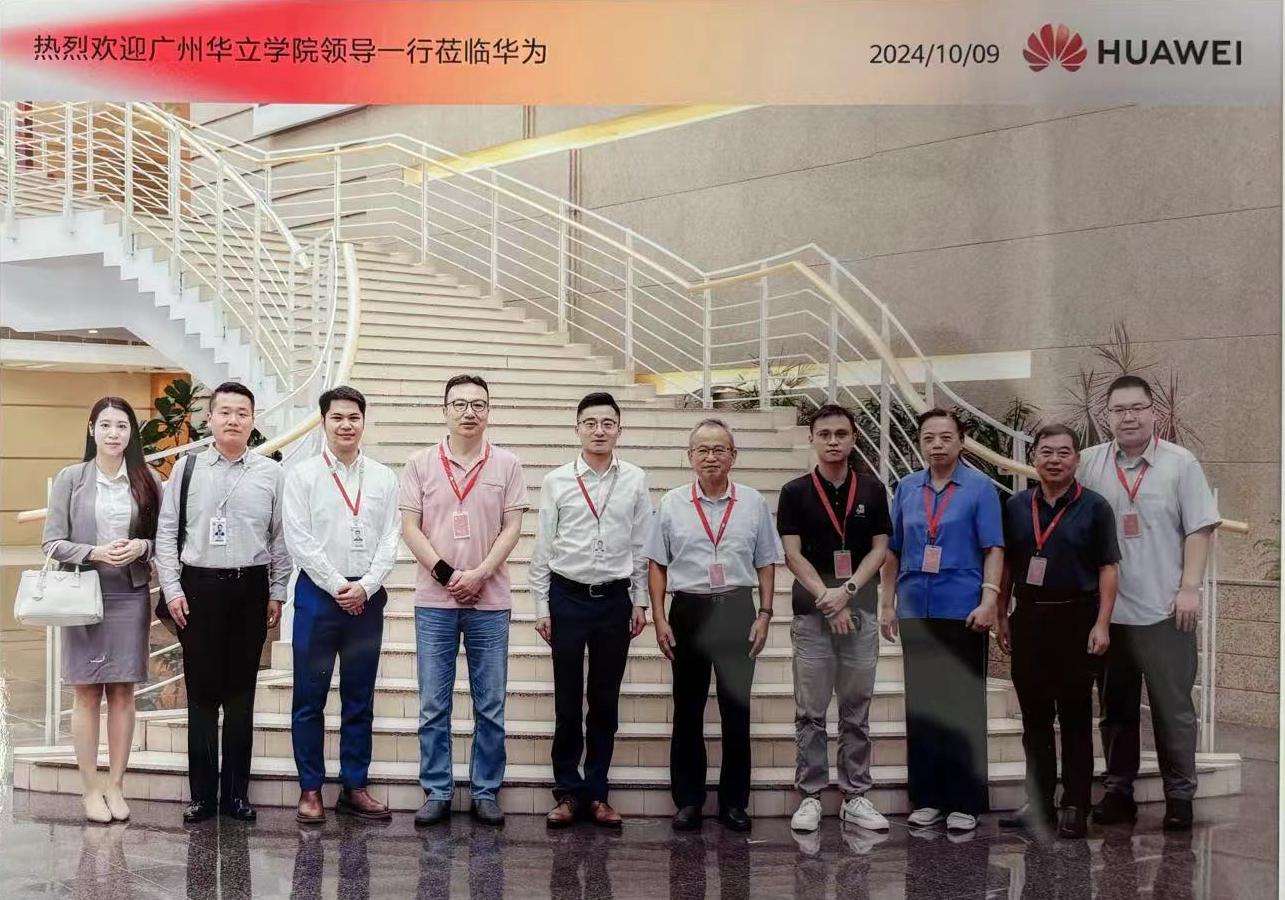 2024年10月9日,广州华立学院刘洁生校长带队前往华为技术有限公司进行考察,并与华为公司高层进行了深入的交流。这次交流聚焦于探索校企合作、实验室建设以及现代产业学院共建等议题,通过产教融合推动广州华立学院在智能化、数字化领域的高质量发展。