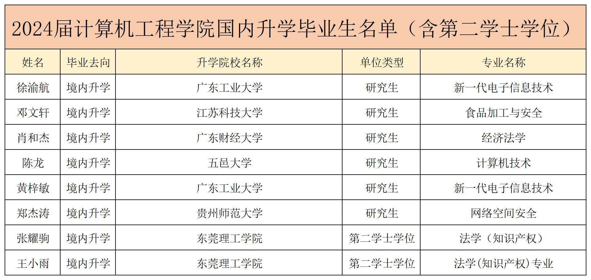 2024届计算机工程学院国内升学毕业生名单(含第二学士学位)