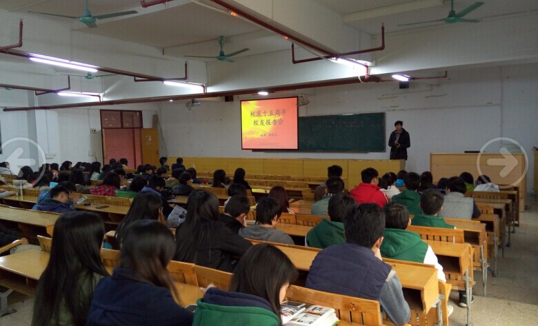 2014年12月18日下午,学部在3-307举行了校庆十五周年校友报告会,会议邀请了10级毕业生谢国杰主讲,其目前就职于广东省集美集团。学部部长程东胜、党总支书记任佳、校外副主任文谧及学部专业老师出席了本次报告会。