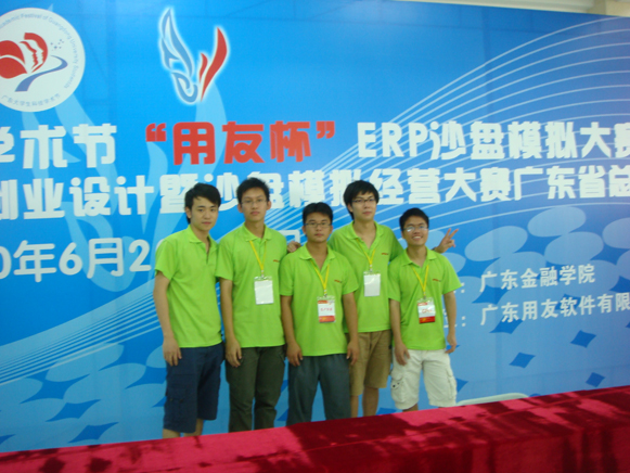 2010年6月20、21日第四届广东省沙盘模拟比赛暨“用友杯”全国企业经营模拟及沙盘模拟比赛广东省赛区总决赛于广东省金融学院举行,本次比赛共有来自省内的39支本科院校(其中包括中大、华工等知名院校)及31支专科院校共70所学校参加。参赛院校数量及选手水平均创了历史新高。