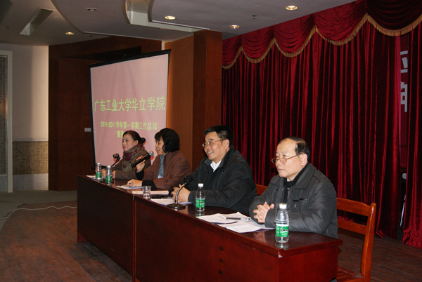 会上,詹业宏常务副院长作了学院2010-2011学年第一学期的工作总结报告。在报告中,詹院长从校内教学、校外教学、就业、招生、学生管理、人事行政管理、党建工作、工会活动等八个方面总结学院本学期的工作,肯定学院取得的成绩和全院师生的努力,同时也指出了不足之处和存在的问题,要求各部门和广大教职工在下学期工作中,在已取得成绩基础上认真总结、努力克服不足之处,继续做好各项工作。最后,詹院长还对下学期的主要工作计划作了部署,强调了要重点做好“迎评”和“学士学位授予资格申报”工作,深化“3+0.5+0.5”人才培养模式改革、加强教风和学风建设、深化全员工作量化管理等工作,要求全院教职工继续保持高度的责任心和高昂的斗志,积极主动,团结协作,共同奋斗,推进学院的各项工作。