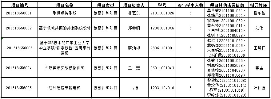 近日,教育部及广东省教育厅发布《关于公布2013年国家级大学生创新创业训练计划项目名单的通知》,我院5个项目喜获立项(具体名单附后)。