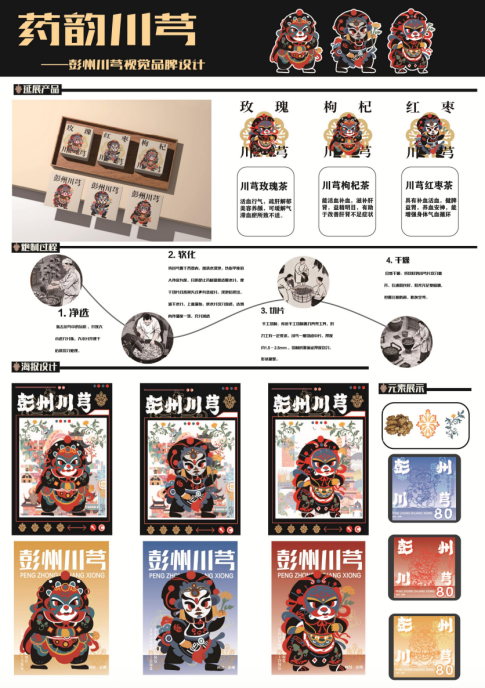围绕彭州川芎(中药材)的药用价值与地域特色,设计品牌LOGO、包装、宣传海报,打造“中药材+地域品牌”的视觉体系,助力农产品增值。