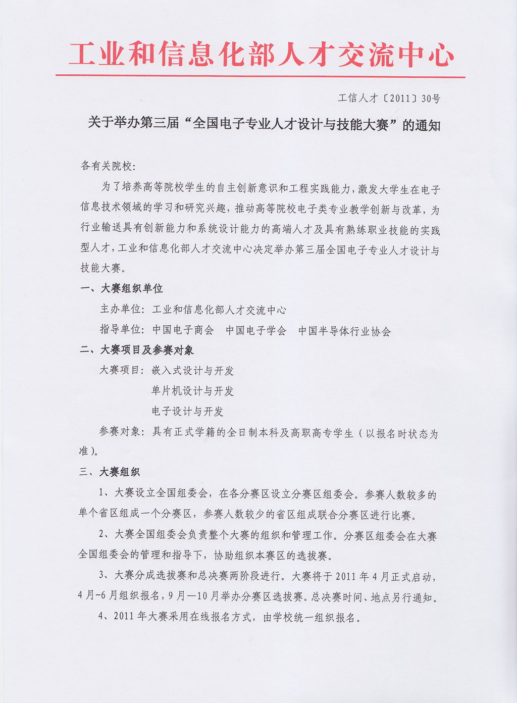 第三届“全国电子专业人才设计与技能大赛”的通知(转)
