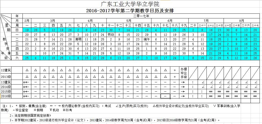 2016-2017学年第二学期校历