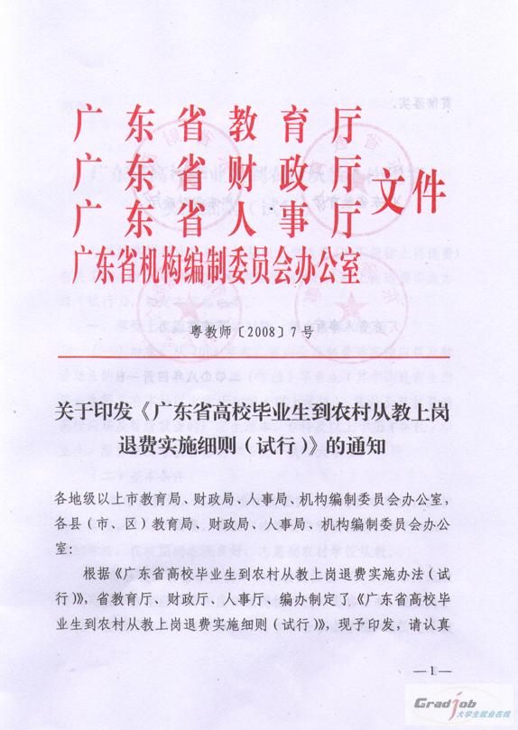 关于印发《广东省高校毕业生到农村从教上岗退费实施细则(试行)》的通知 作者:就业办 发布时间:2008-04-11 00:00:00 浏览次数: 次 【字体:小 大】 相关附件下载:退费附件.rar 分享到: 【打印正文】