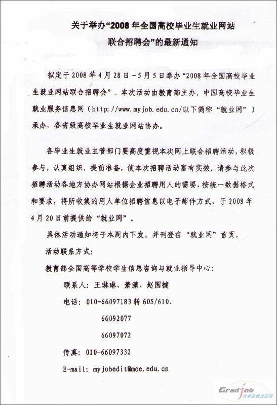 关于举办“2008年全国高校毕业生就业网络联合招聘会”的最新通知