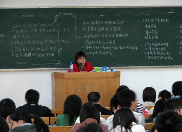 一是目前的就业形势。熊处在总结2007年毕业生就业情况及特点的基础上,对全国、广东省2008年的就业形势作了深刻的分析。希望同学们能认清形势,摆正心态,准确定位;