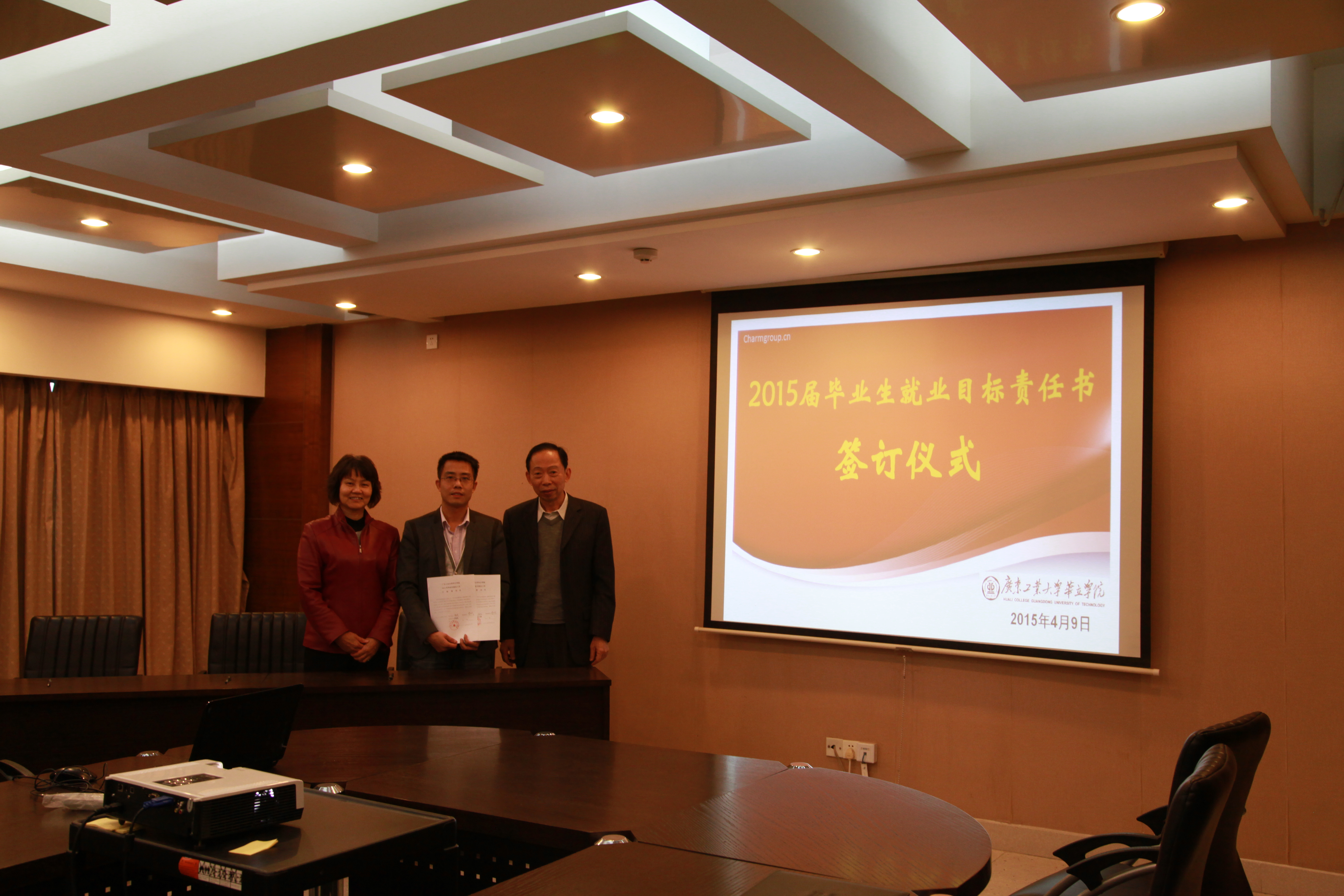 嗣后,董小麟执行院长和王锦秀书记代表学院分别与就业指导中心、各学部签订了2015年毕业生就业创业工作目标责任书。
