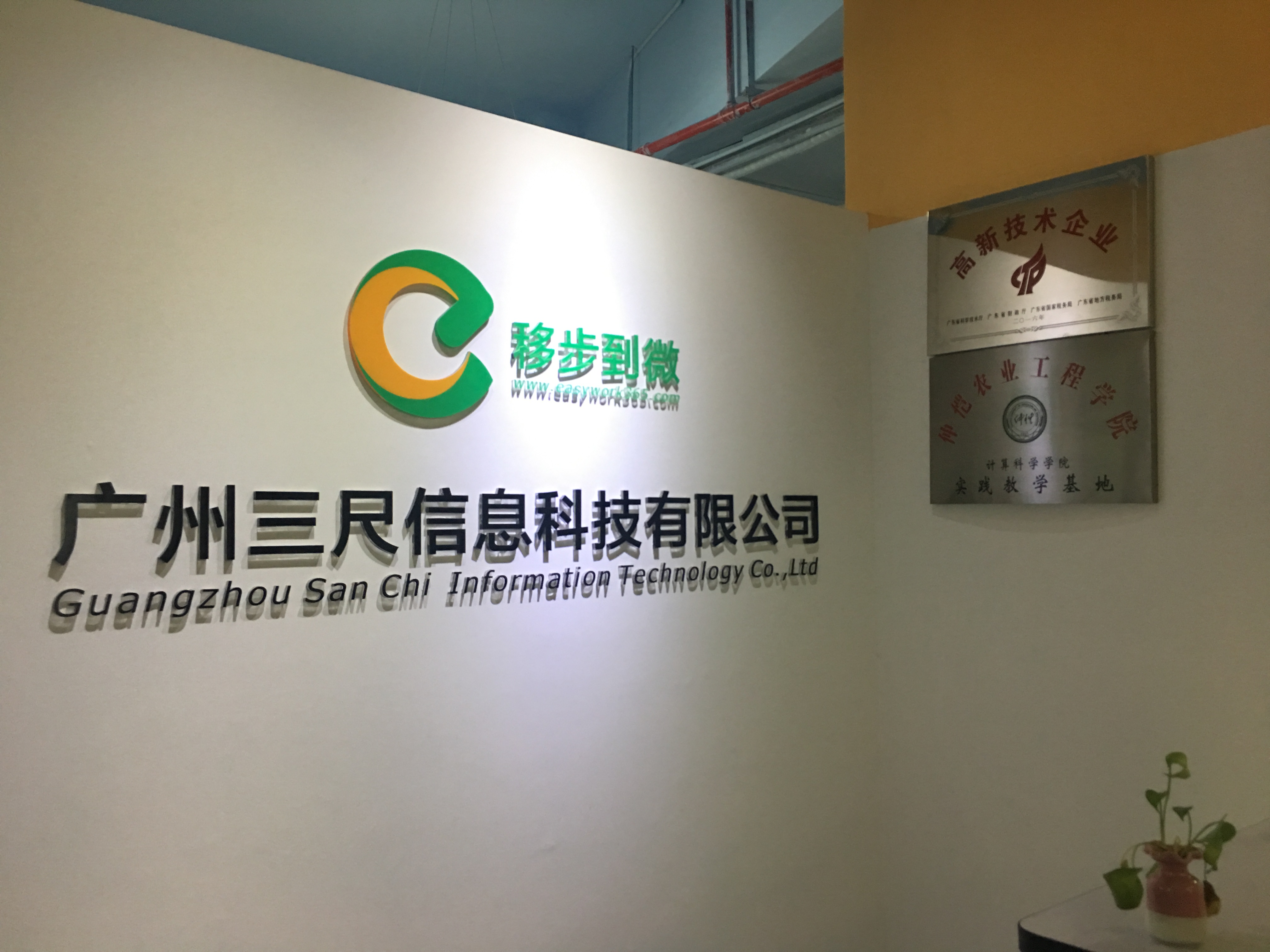 广州三尺信息科技有限公司是国内首家专注于为中小型企业提供移动办公整体应用的行业方案提供商、是微信授权的国内首批研发团队,专注于流程管理,向广大企事业单位提供丰富、实效的移动办公应用,助力企业低成本优化流程管理,目前已成为微信核心服务商和首批官方合作伙伴及内测星级会员单位,多次参与微信高层峰会,探讨微信开发的规划和方向,服务企业包括包括东风日产、招商证券、中国人寿、广深铁路公司、宝洁工会、玖龙企业、吉兆餐饮集团、天瑞医疗等。