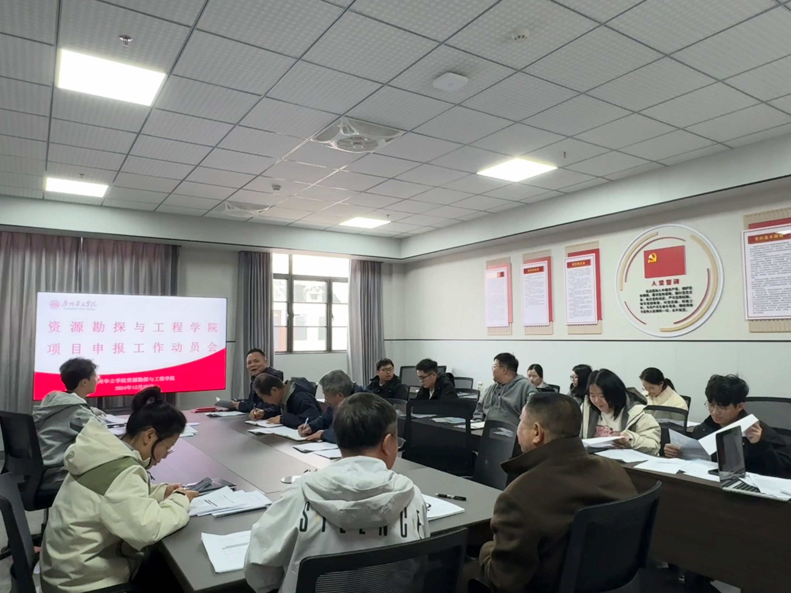 为提升科研项目申报成功率,增强科研竞争力,在资源勘探与工程学院路孝平院长的精心指导与大力支持下,2024年12月25日,我院于4教907会议室组织召开了“资源勘探与工程学院项目申报动员会”。此次会议旨在深入解读项目申报通知,充分调动全院教师的积极性,全面推动2025年科研项目申报工作顺利开展,力争在科研项目申报工作取得新进展。