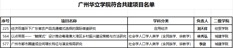 我校三位教师的课题符合广东省哲学社会科学规划2023年度学科共建项目资格 发布时间:2023-07-14 17:15:01 浏览次数: 次 【字体:小 大】 近日,据广东省哲学社会科学规划专项小组通知,我校经贸学院刘天祥教授,城建学院林秀弘、李欣的课题符合2023年度学科共建项目资格。 学科共建项目是广东省哲学社会科学规划项目一种项目类型之一,由申报人所在单位筹集研究经费,广东省哲学社会科学规划专项小组立项,旨在支持哲学社会科学学科体系建设和人才队伍建设,提升哲学社会科学研究水平和综合实力。 终审:科研处 分享到: 【打印正文】