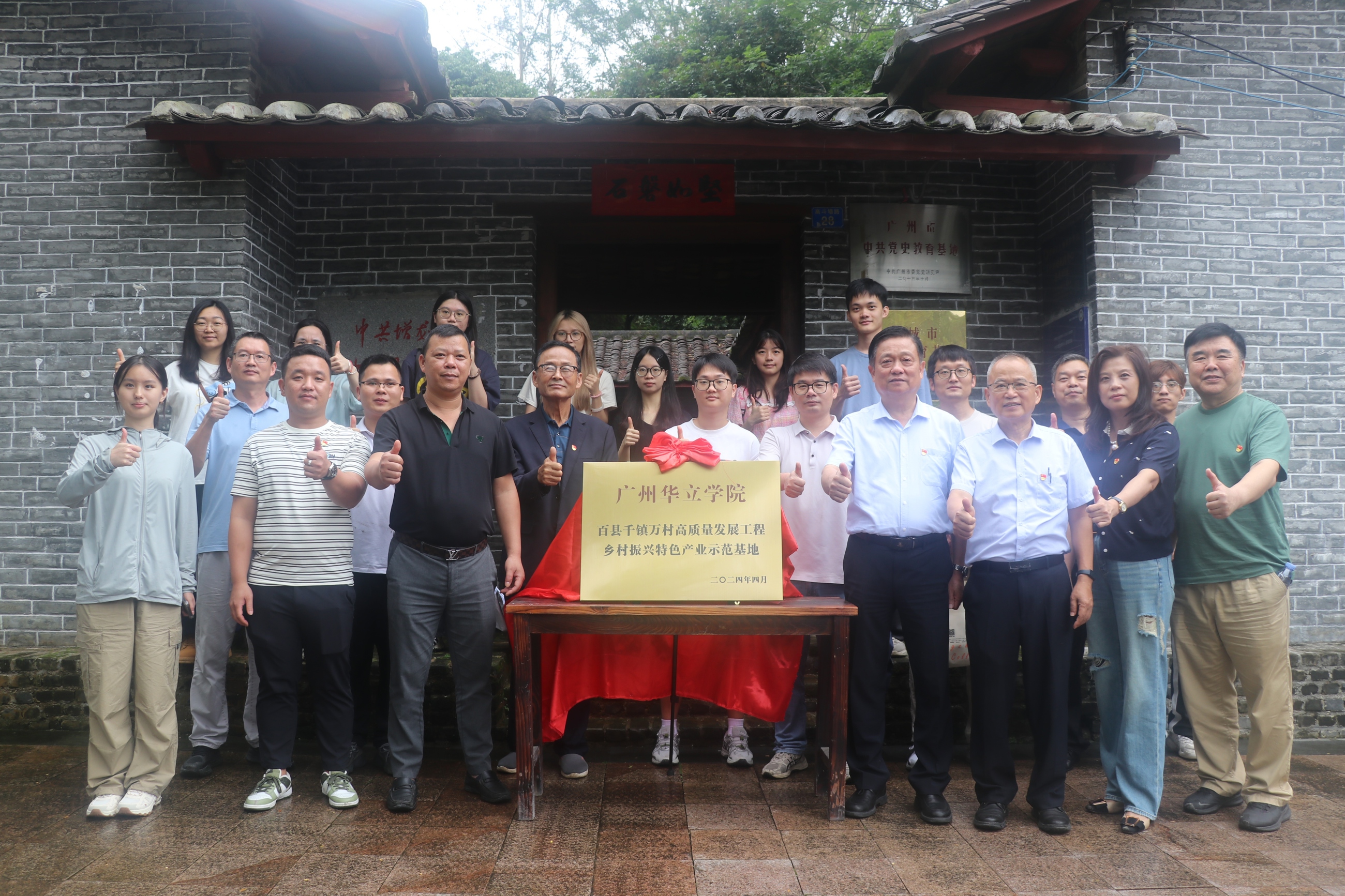 6月7日,广州华立学院“百县千镇万村高质量发展”工程乡村振兴特色产业示范基地揭牌仪式在广州市增城区正果镇白面石村成功举行。广州华立学院校长刘洁生、党委书记李琼生、常务副校长柏育红、副校长蔡敏、乡村振兴特色产业研究院院长李向林、广州市增城区正果镇白面石村王晓志书记、王李营常务副书记、王梓鹏副主任以及机关二支部党员代表、学生代表等参加了揭牌仪式,仪式由常务副校长柏育红主持。