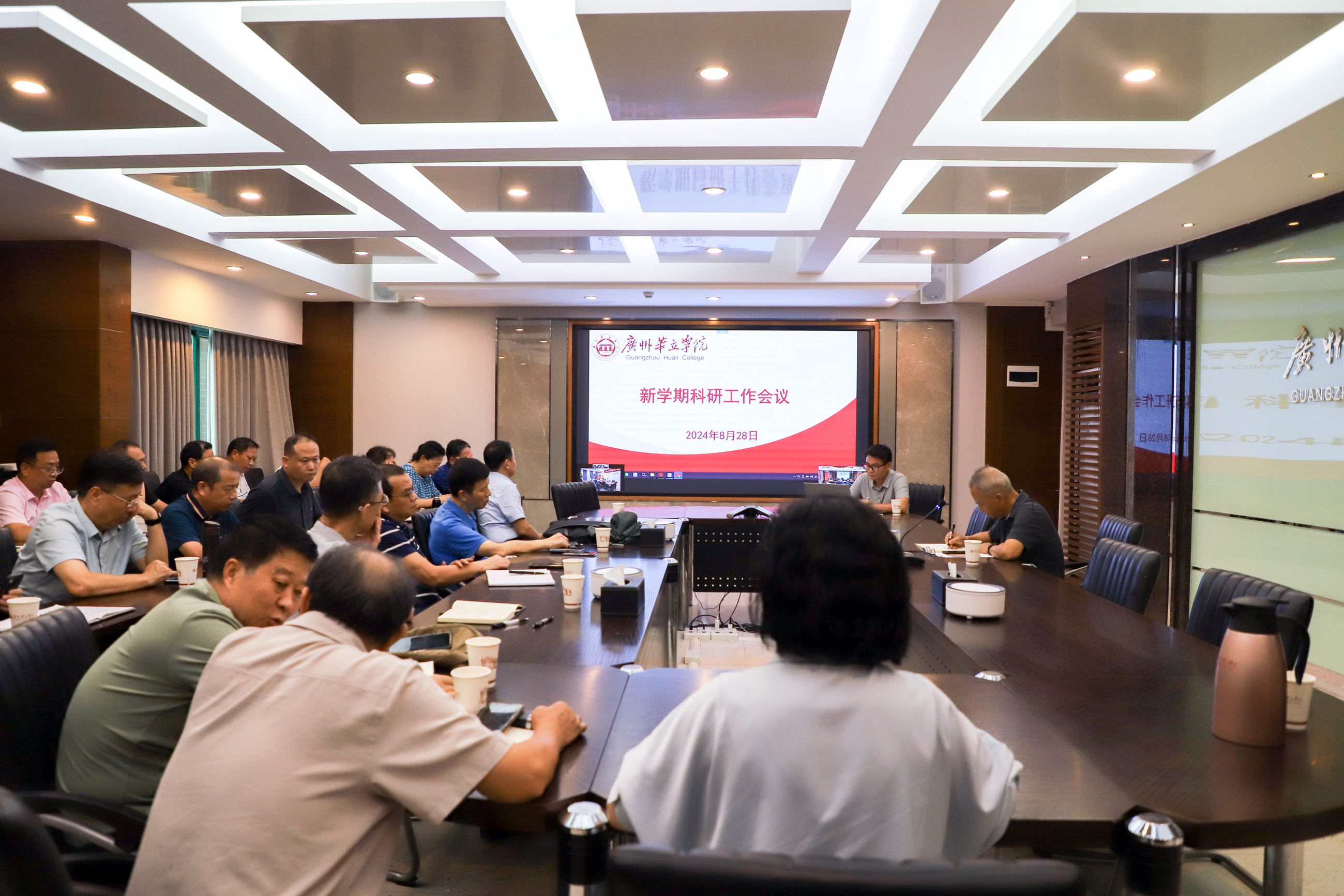 2024年8月28日,我校在广州校区会议室召开了新学期科研工作会议。此次会议由刘洁生校长主持,参会人员包括各二级学院院长、学科带头人、研究机构负责人及科研处人员。