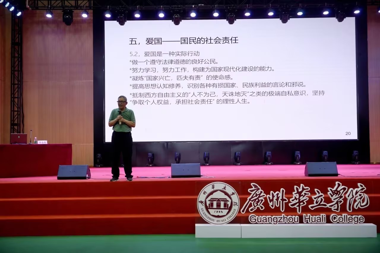 9月2日,晨光初照,广州华立学院江门校区全体2024级新生满怀憧憬、共迎新学期启航。广东省老科学技术工作者协会科普讲师团成员广东工业大学博士生导师余永权教授,一场题为《科学、技术、真理、文明、爱国》的讲座在校区文体楼隆重举行。余教授结合人生经历,深入浅出与新生们一起探讨科学活动的过程和科学的特点,分析技术和真理的辩证关系,探讨文明与群体文化的关系。余教授最后以“爱国”作为结尾,从国民的社会责任和认同感出发,鼓励新生们积极参与国家建设,为国家的繁荣和进步贡献自己的力量。殷切祝愿新生们在接下来的学习生活中,将“爱国情怀”内化于心、外化于行。