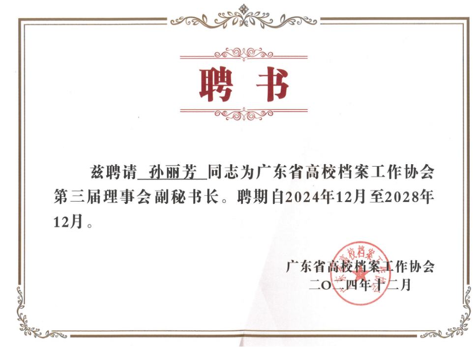 广州华立学院图书馆兼档案馆馆长孙丽芳当选广东省高校档案工作协会第三届理事会副秘书长
