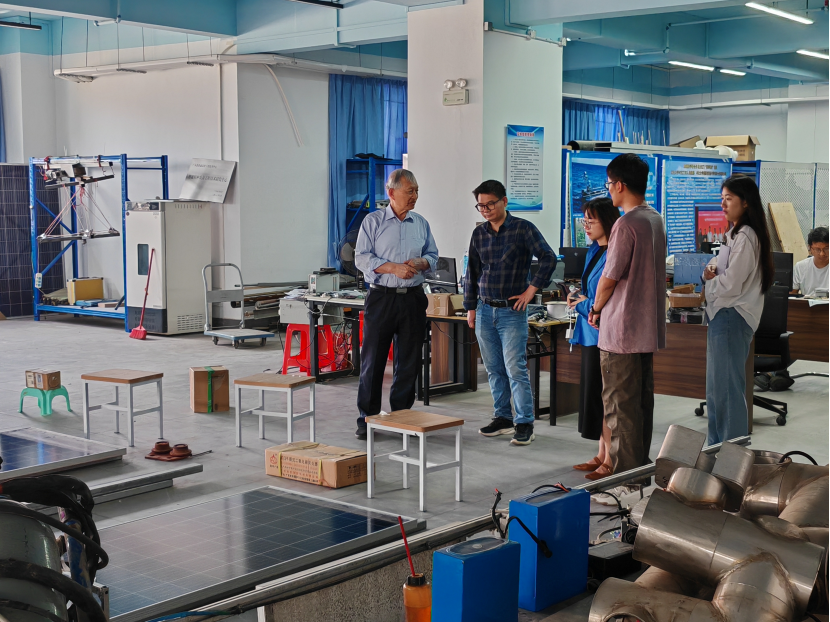 下午抵达江门校区后,科研处一行马不停蹄前往叶家玮教授的实验室进行参观慰问。在参观过程中,叶教授现场展示了最新一代的光伏板自动清扫机器人,让老师们大开眼界。在详细了解了叶教授实验室的现状,认真倾听叶教授关于科研项目的介绍后,李处长当场表示学校将全力支持叶教授的科研项目,为其提供充足的资源与政策保障。这一表态极大地鼓舞了叶教授及实验室团队的士气,为科研项目的顺利推进注入了一剂强心针。