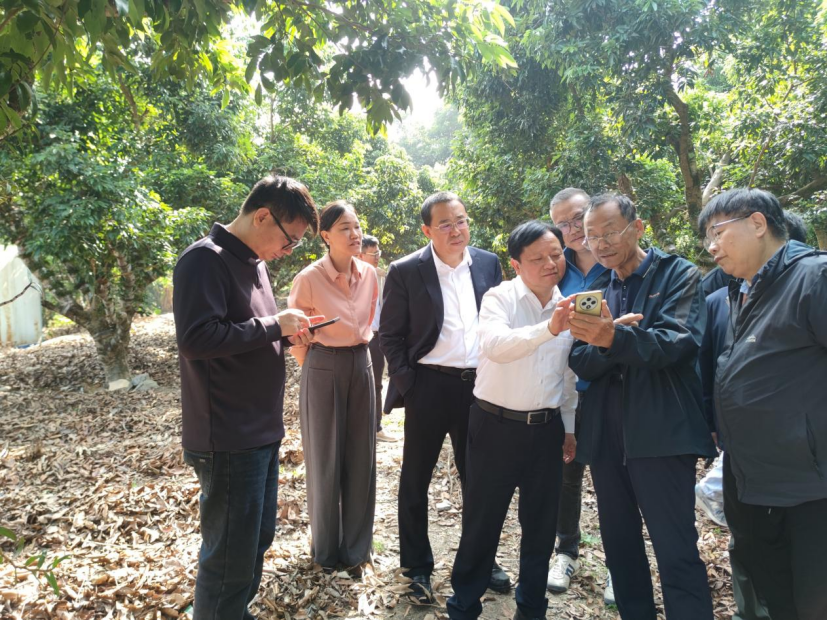 近日,在广州市林业和园林局、增城区林业和园林局陪同下,福建农林大学校长兰思仁教授一行莅临广州华立学院增城马屋村荔枝四维一体技术增城基地,科研处李有红处长陪同接待并全程参与考察交流。考察团通过实地走访对该技术的生态创新性与产业赋能成效给予高度评价。