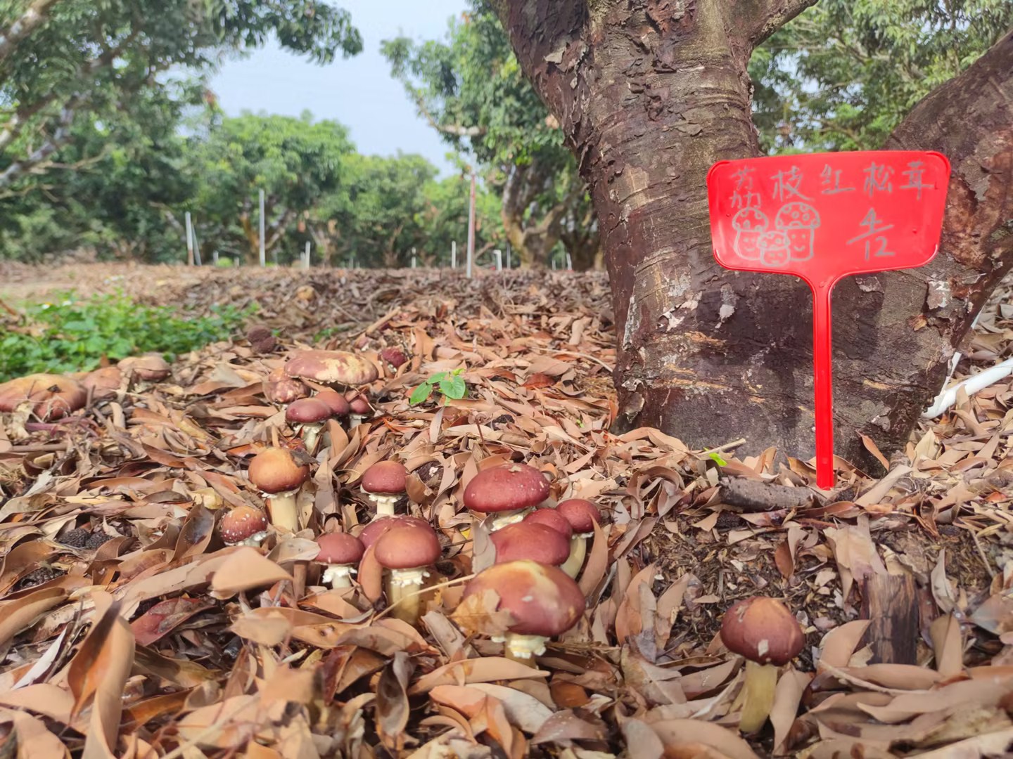 这一模式已在多地生根结果,从汕尾陆丰的滨海果园到增城马屋村的丘陵林地,从增城畲族村的山地果园到如今的新会梁黄屋村,李向林教授团队将技术与热忱带到一个个田野乡村。该模式以植物生态位分层理论为指导,在荔枝树枝干上培育铁皮石斛名贵中药材,林下规模化种植红松茸等高档食用菌,林间养殖蜜蜂采收花蜜,同步完成老旧荔枝树品种改良,构建起 “种菇养树、树菇共生” 的生态循环体系 —— 采收后的菌糠渣作为优质有机肥,既降低农户种植成本,又破解了传统果树 “大小年” 痛点。这些实践让农户摆脱了单一依赖果品的收入结构,帮助他们掌握了现代农业技术,从 “传统农民” 向 “技能农户” 转变,有效激发了乡村产业发展内生动力。此次新会梁黄屋村基地的揭牌,是该模式在珠三角乡村的重要延伸,泰盛石场的专项资金支持与梁黄屋村 30 亩荔枝林投入,叠加华立学院技术支撑与村集体配合,成功破解了当地村庄收入来源单一的难题,为村民开辟了稳定增收新渠道。