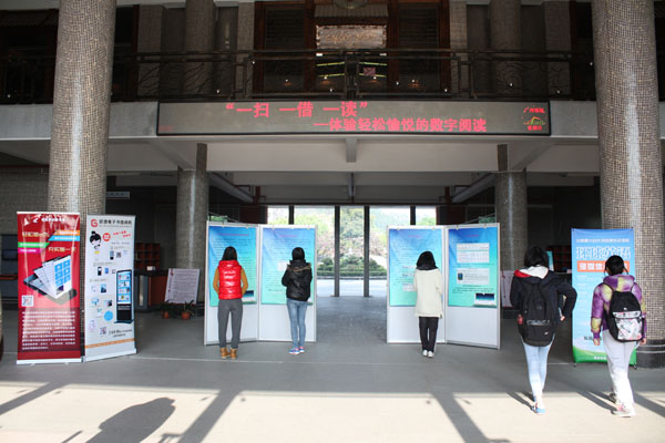 图书馆以开启本馆微信公众服务平台为契机,于2014年12月23日至12月29日举办了 “一扫 一借 一读——体验轻松愉悦的数字阅读”为主题的数字资源宣传周活动。