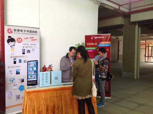 本次活动内容丰富,以图片宣传、现场讲座、现场指导、现场咨询等多种形式充分宣传馆藏数字资源,重点推广最新引进的歌德电子借阅机和超星移动图书馆的使用方法与技巧,指导读者如何下载移动图书馆客户端、如何使用用微信公众平台和账号绑定等。
