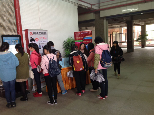 图三:图书馆老师指导学生使用歌德电子借阅机