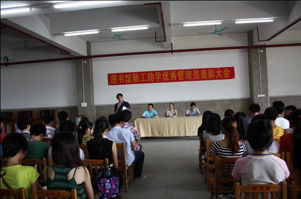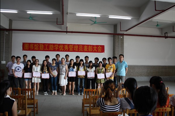 2013年6月28日,图书馆在过刊阅览室成功召开2012—2013学年度勤工助学优秀学生管理员表彰大会,图书馆赖馆长及各部门负责人乐老师、齐老师、部分负责勤助学生老师及全体勤工助学管理员参加了会议。